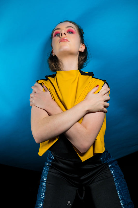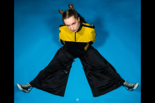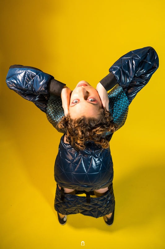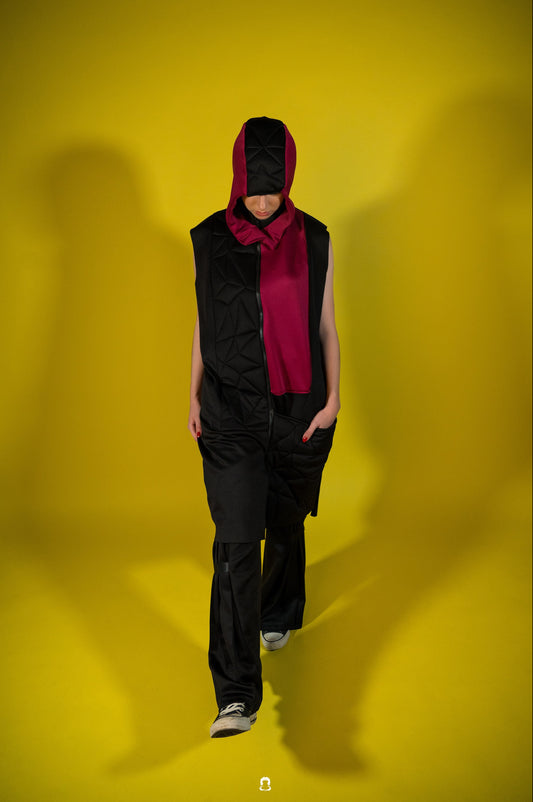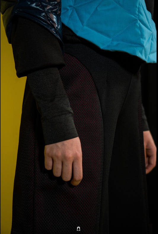 the concept: embracing an ethos of inclusivity, it addresses gender dysphoria and body dysmorphia. Every garment is meticulously tailored to accommodate diverse body shapes, enabling any gender to find a perfect fit. Belts, buckles, and attachments allow wearers to customize each piece, providing a sense of empowerment and comfort. Whether accentuating the waist, concealing the hips, or simply embracing personal preferences, these versatile modifications cater to individual styles and unique self-expression. This innovative approach imbues each piece with a multifunctional allure, striking the perfect balance between style and functionality.